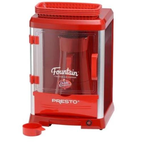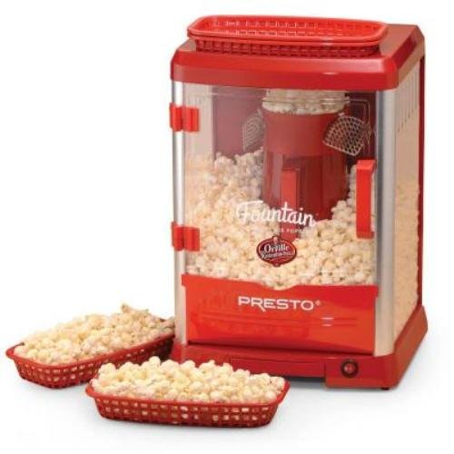 -. Brand : Presto -. Color : Red -. EAN : 0641243324708 -. Feature : Cabinet holds up to 40 cups of popcorn / Great for family movie nights / Side vent helps keep popcorn crispy / Hulls and un popped kernels drop thru built-in sifter and into the removable tray for easy disposal / Includes four serving baskets -. ProductGroup : Kitchen -. ProductTypeName : KITCHEN -. Title : New Orville Redenbacher Popcorn Machine Home Theatre Air Popper -. UPC : 641243324708