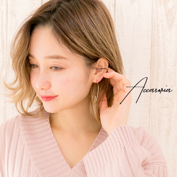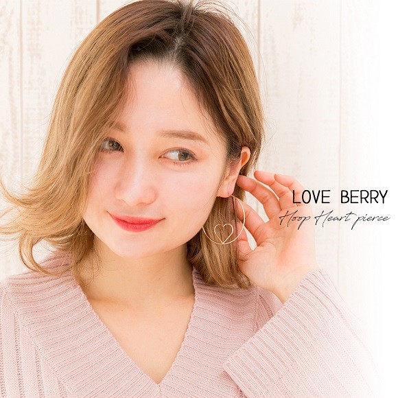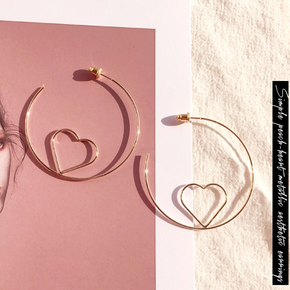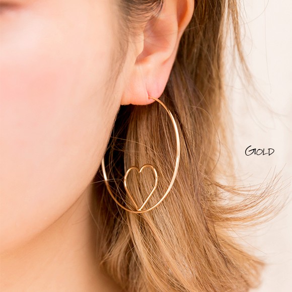 大ぶりのフープの中にあしらった、小さなハートのフープが印象的なピアス。
