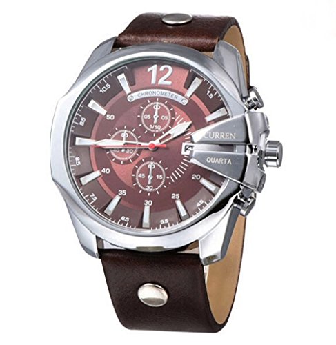 -. Title : CURREN Original Men's Sports Waterproof Calendar Leather Strap Wrist Watch Good Quality 8176 Silver Brown