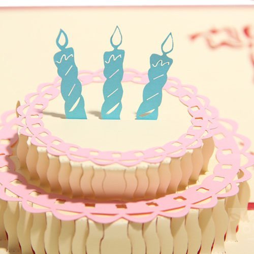 -. Feature : Package of 2 Handmade Papercraft3D Creative Gift Card -- Pop Up Birthday Cards with Birthday Cake Flowers 1 Candle / Folding size: 15 x 13 cm / Each card include: 1 Card + 1 white Envelope +1 unsealed clear plastic sleeve / You can add your own words if needed / Fantastic birthday card for your family, colleague, friends etc whoever you love
