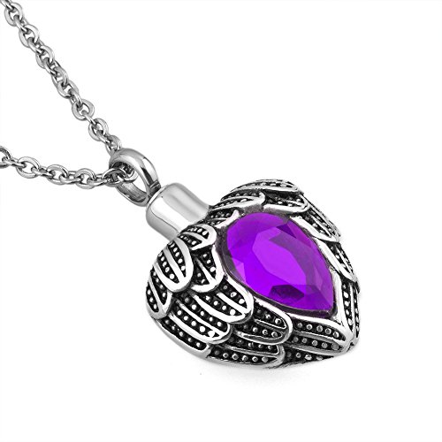 Chris Johnsons Stainless Steel Heart Angel Wings Memorial Cremation Keepsake Urn Necklace