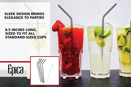 Epica Stainless Steel Drinking Straws, Set of 4- Free Cleaning Brush Included