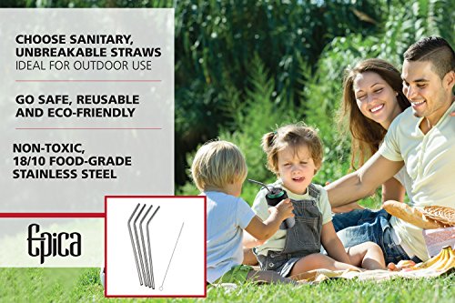 NON-TOXIC, 18/10 FOOD-GRADE STAINLESS STEEL: Never worry about toxins and BPA or lead with Epica drinking straws. They are strong, rust-resistant, and will not bend, twist, crack, or break like plastic and glass straws are known to do. A quick rinse with the cleaning brush and then run it through the dishwasher and you're done!