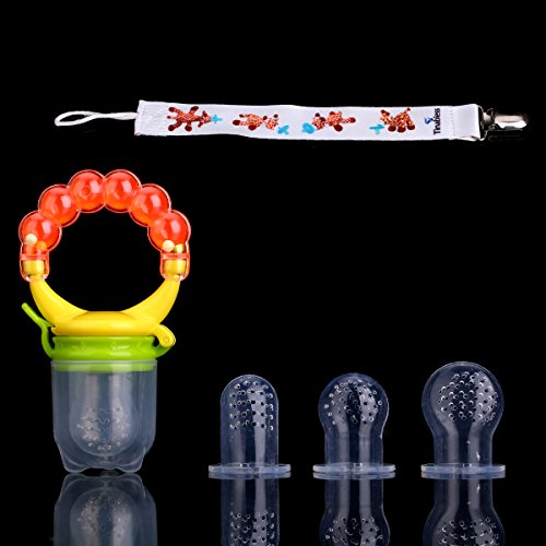 -. Feature : THE Tinabless FEEDER HAS THREE 100% FOOD GRADE SILICONE - Made from the highest food grade silicone which is BPA Free, Lead Free, Petroleum Free, Latex Free and Phthalates Free. One nipple is approP.R.Iate for ages 0-6 months, a second for ages 6-12months and the third is for ages 9+ month old baby's / DEVELOPING HABIT-Promote the development of senses of sight smelling,tasting,touching for your baby. It can be used for sucking various kinds of food except milk,which balances the nutrition of your baby and makes your baby grows healthily¡ê?and prevent your baby from developing the bad habit of dietary bias / EASY USE - Food grade silicone is stain resistant and does NOT retain odor. Simply wash in warm soapy water to clean or dip in boiling water to steralize,Cut the fruit and vegetable, meat into strips, open the silica gel filter.Help the baby perceive all kinds of food, perceive the world / EXERCISE YOUR BABY ABLITY - It can help your baby to have food by himself or herself,built his or her independence and confidence.Meanwhile,it can also help your baby to exercise the coordination of hands and mouth / VARIETY OF FEEDER USES - Use with, fresh or frozen fruits, vegetables, meats, ice chips, breast milk or use it to administer medicine to your baby