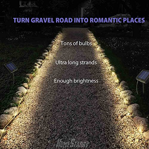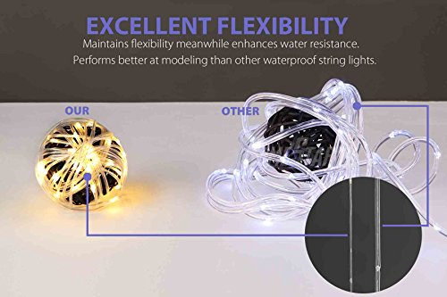 - IP65 Waterproof: Clear soft plastic encases the solar lights strands to provide excellent waterproof ability and make them ideal outside lights. This design also prevents the lights strands from getting tangled. Excellent flexibility enable these lights to be twisted into any shape, perfect string lights for patio, garden, yard, wedding, party, etc.