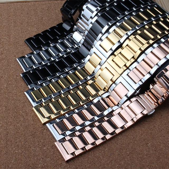 | [해외] 스테인레스 스틸 손목 더블 클릭 버클 블랙 실버 옐로우 골드 핑크 골드 금속 손목 밴드 18 미리메터 20 미리메터 22 미리메터 24 미리메터 새로운 |
