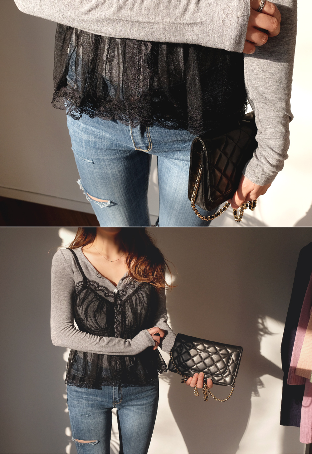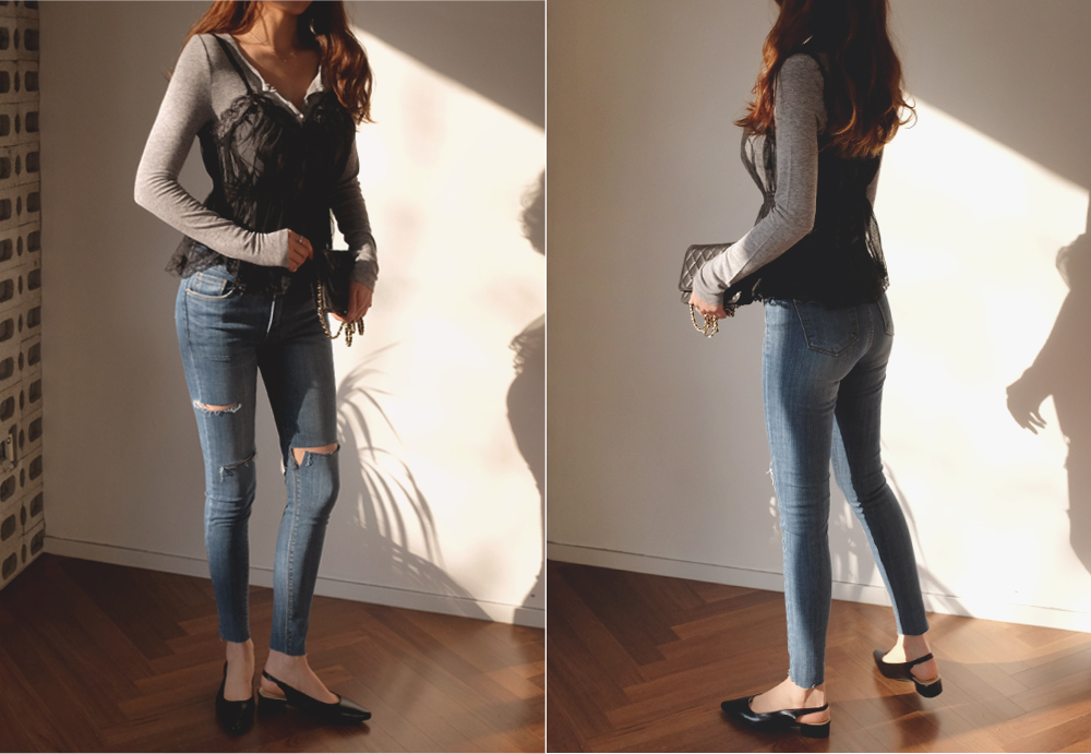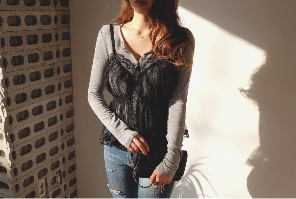 다양한 상의와 레이어드 하기 좋은 레이스 뷔스티에:D