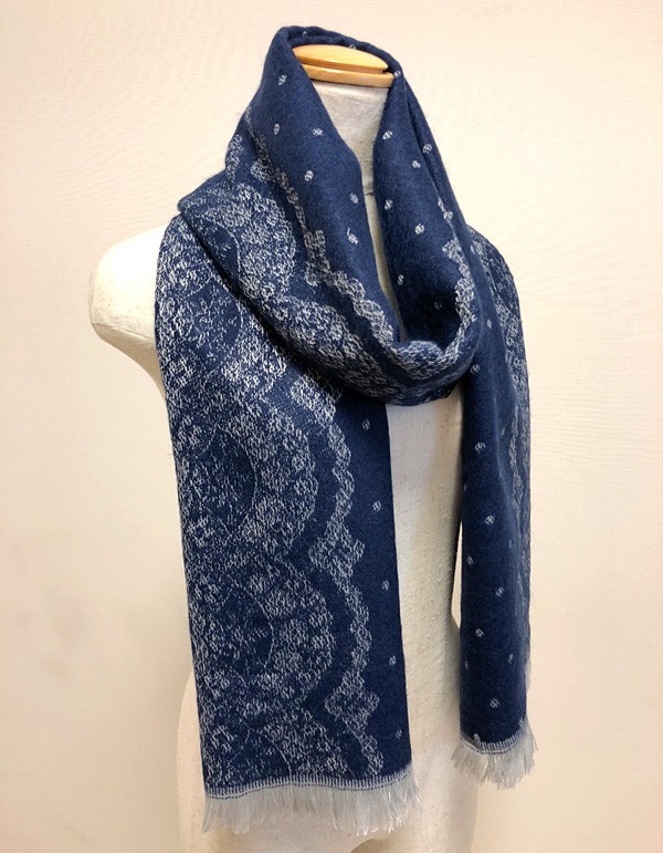 繊細なレース模様と水玉のモチーフがきれいめ可愛い大判ストールです コーデに差が付くレース柄がレディライクな印象💕 普段の着こなしにプラスするだけで、甘くなりすぎない大人のフェミニンコーデの完成です。 ふんわりとしたジャガード織りの起毛した生地はやわらかく肌ざわりなめらかで温かい。 裏返すと反転した織り柄なので、リバーシブルで色目を楽しめます☆ ショール風のアレンジも楽しめるたっぷり大きめサイズもうれしいポイント♪ カラーは、ブラック、ペールピンク、ネイビー、ミントグリーン、ダークグリーンの5色展開です。 |