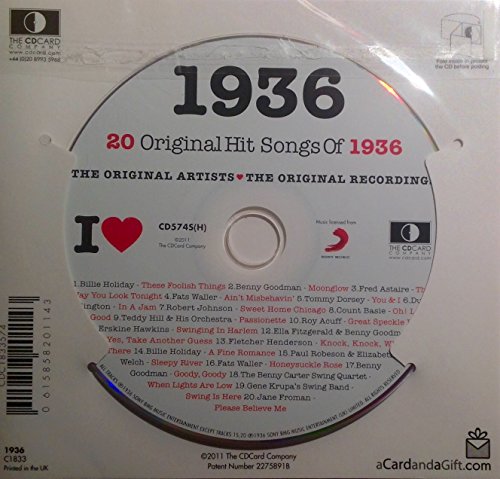 1936 Birthday Gifts - 1936 Chart Hits CD and I Love 1936 Greeting Card