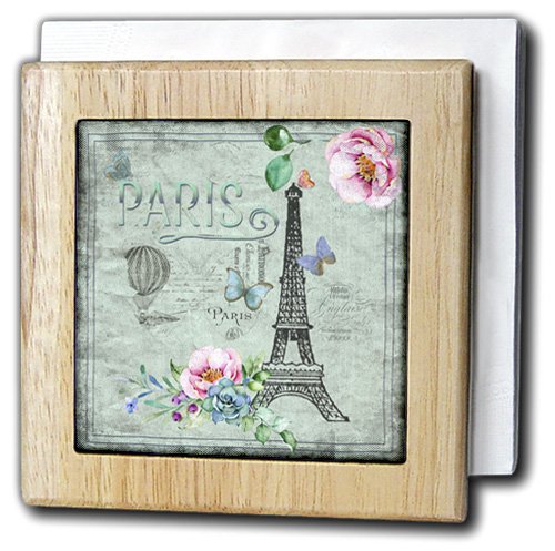 -. Title : 3dRose Uta Naumann Typography Watercolor - Paris France Eiffel-tower Shabby floral Text Illustration Vintage - Tile Napkin Holders