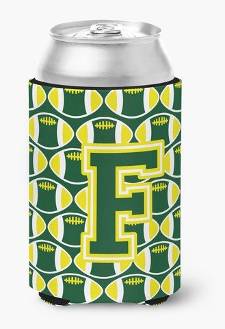 Caroline's Treasures CJ1075-FCC Letter F Football Green and Yellow Can or Bottle Hugger, Multicolor