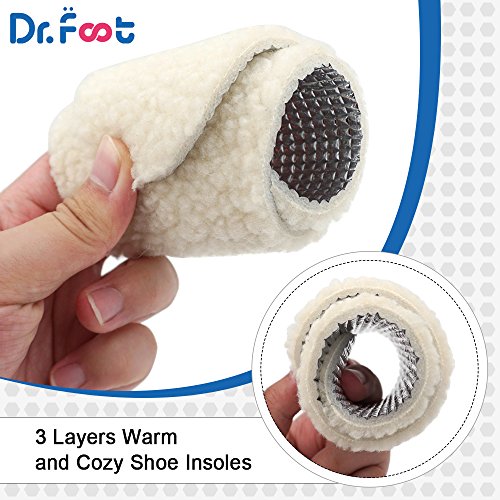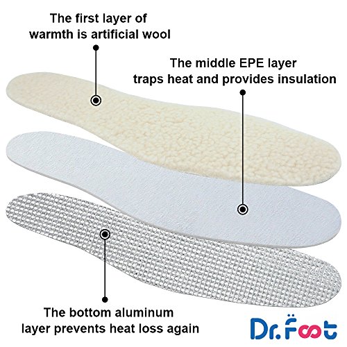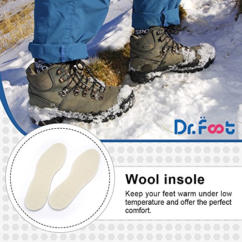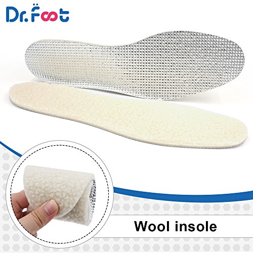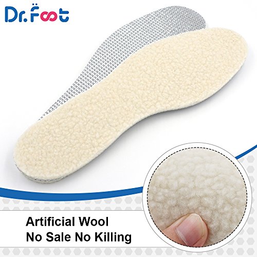 Dr. Foot’s Wool Insoles, Artificial Wool Shoe Inserts, Winter Heated Inserts with 3 Layers Warm for Men and Women (White)