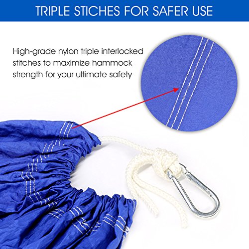 SOFT BREATHABLE NYLON PARACHUTE HAMMOCK: Tear & mildew-resistant fabric to ensure longevity, supreme support, reliability; while its soft-as-feather touch lulls you to sleep instantly. Easy to clean and dry quick, guaranteed to hold 450 lbs