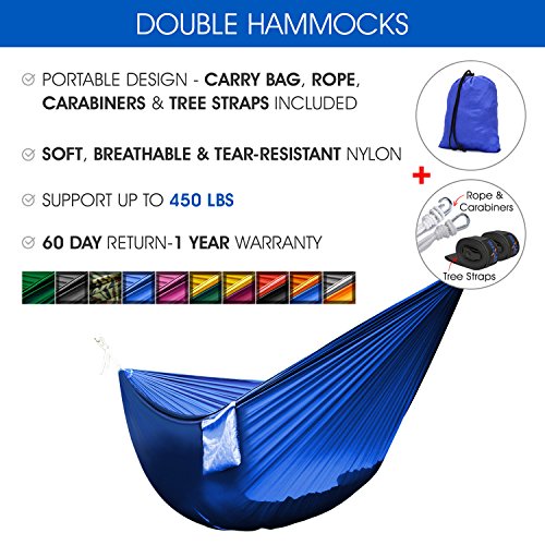 Ultralight Portable Parachute Nylon Double Hammock With Tree Straps, Carry Bag Included for Camping, Backpacking, Travel, Beach, Garden