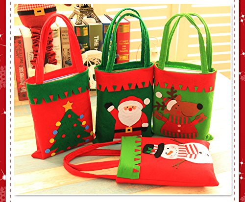 Hraindrop Set of 4 Christmas Gift Bag, Halloween candy bag, Non-Woven Reusable Fabric Holiday Gift Bags 12"x8"