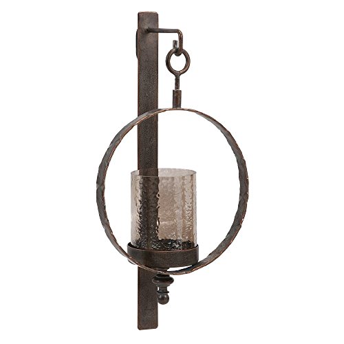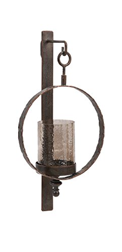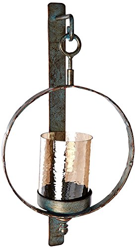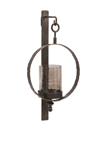 Studio : IMAX Worldwide Publisher : IMAX Worldwide Binding : Misc. Product Description Whenever you get round to lighting it, this circular metal wall sconce with crackled glass hurricane will light any space with aplomb. Product dimensions: 22"h x 11"w x 5" 0