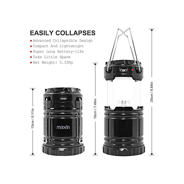 MAXIN 캠프 라이트 접이식 초밝다 충전식 배터리 방수 포터블 LED솔라 램프 회중전등 캠프용