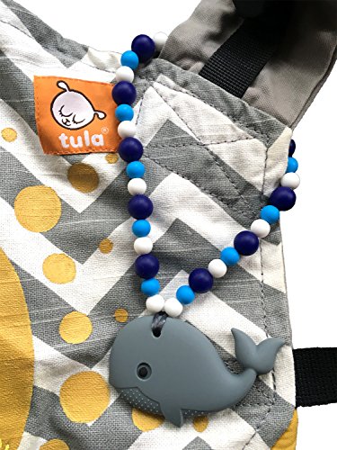 Nummy Beads Gray & Blue Whale Baby Carrier Teether Teething Accessory Toy