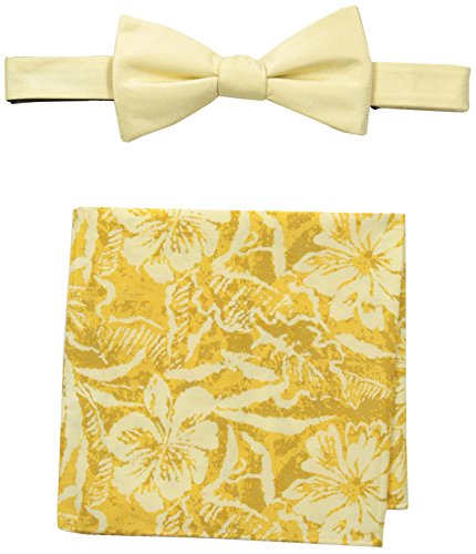 Tommy Bahama Men's Solid Bow Tie and Hibiscus Pocket Square Set,Yellow,One Size