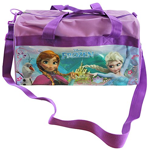 From Disney's hit animated movie Frozen, comes this enchanting duffle featuring sisters, Princess Anna and Princess Elsa. Carry your visions of high adventure in this frozen duffle bag. Lovely Anna and Elsa adorn this sturdy duffle bag made of 600D Polyester with printed PVC Side Panels. Your little girl will be in love with this magical duffle bag.Feature