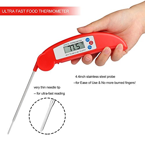- SUPER FAST:Instant Reading Thermometer gets temp readout within 4-8 seconds with high precision sensor.From now on, no overcook again and no waiting.