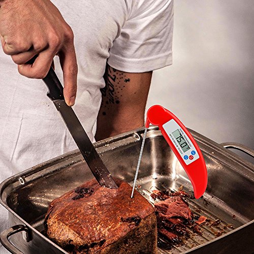 Meat Thermometer,littlejian Electronic Digital Food Thermometer with Instant Read and Probe for Kitchen Cooking, Grill, BBQ, Milk, Candy and Bath Water(Red)