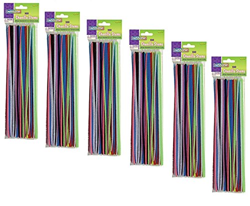 Chenille Stems 12" x 4mm 100 pcs. assorted colors. 100 pieces of 12" crush resistant polyester stems. Chenille stems are a classic art material. Great for small hands. East to add color, texture, and dimension to any art or craft project. Stems can be bent, twisted, curled or wrapped to just about any shape. wire can be straightened and reused.Feature