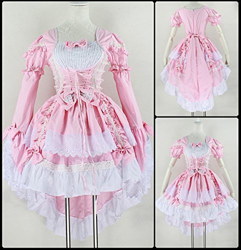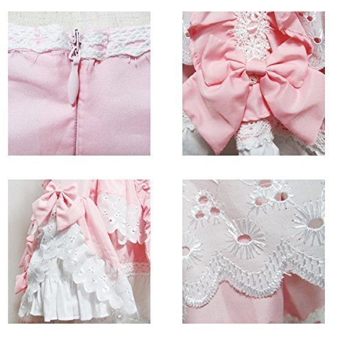 Frilly maid loli MoE cosplay costume cat ears headband petticoat 3-piece set (Pink)