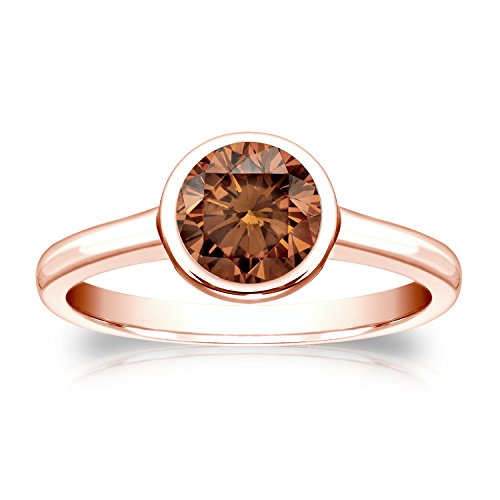 -. Title : 14k Rose Gold Round-cut Brown Diamond Solitaire Ring Bezel set (1/2 cttw, Brown, SI1-SI2) Size 4-9