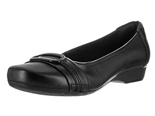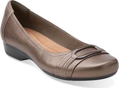 Product Description Women's Clarks, Blanche Rosa Low Heel Shoe Enhance your work wardrobe with these slip ons! Leather upper with ornament accent Slip on style for an easy on and off Fabric lining Cushioned footbed for added comfort 1 inch heel Rubber outsole. Heel Height of 1.00 inches 0