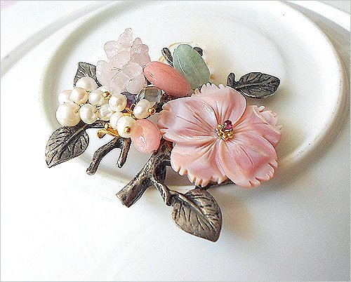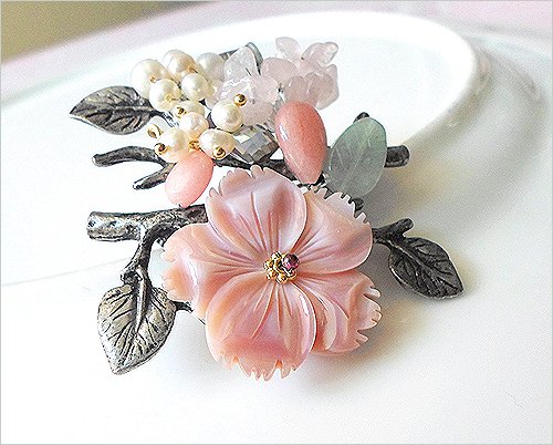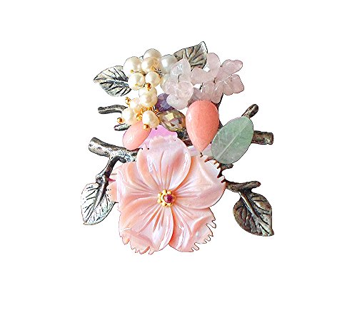 -. Title : Hanabe Women Handmade Antique Flower Mother Of Pearl Cultured Pearl Beaded Nature Garden Ornate Brooch Pin Pink