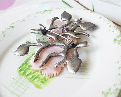 -. Feature : Size : 2.0" X 2.0" / Materials : Mother Of Pearl, Crystal Bead, Cultured Pearl, Glass Beaded / High Quality Tibetan Silver Finish Natural Garden Motif Handmade Brooch Pin Gift / Made In Korea