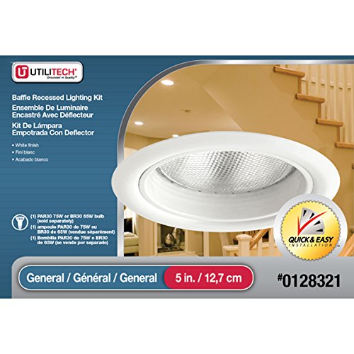 This recessed lighting kit features patented PUSH-N-CLICK clips which are fully adjustable and extra wide to grip uneven surfaces and provides for easy tool-free installation.