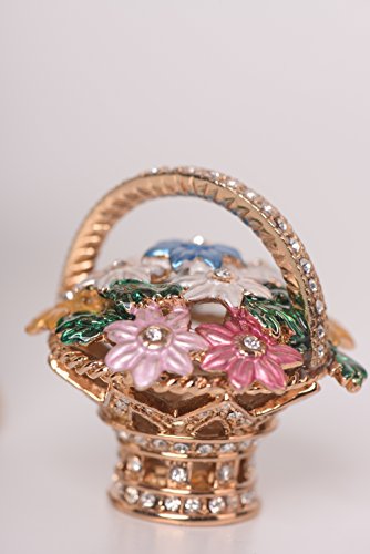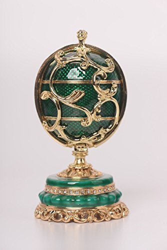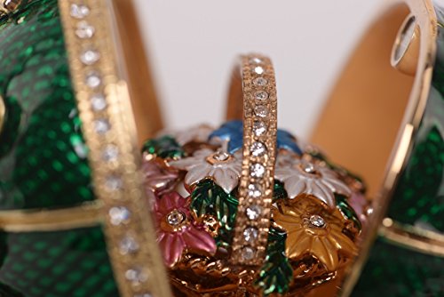 Green Faberge Egg with a Removable Flower Bouquet Inside Trinket Box