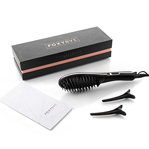Hair Straightening Brush (Rose Gold) - Ceramic Tourmaline Straightener - Digital Temp control + Ionic - Salon Grade