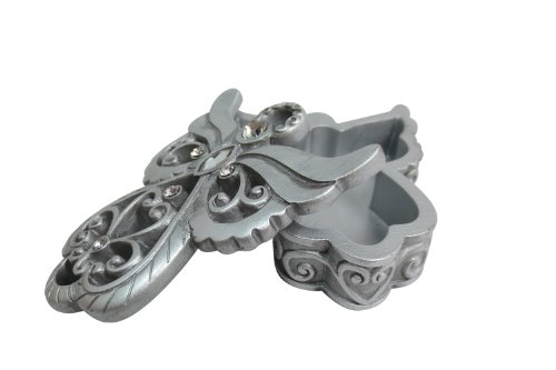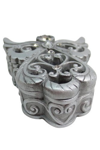-. Binding : Home -. Brand : Dolls Unlimited Omaha -. Color : Silver -. EAN : 0852665437598 -. Feature : Angel shape mini jewelry Keepsake box / 3" x 2.75" x 1" / Made of Pewter-Colored Resin with Rhinestone Decorations / Comes in a gift box -. Label : Global Imports -. Manufacturer : Global Imports -. Model : 8629 -. PackageQuantity : 1 -. ProductGroup : Home -. ProductTypeName : HOME -. Publisher : Global Imports -. Size : Small -. Studio : Global Imports -. Title : Heavenly Angel - Angel of Love Small Jewelry Trinket Box -. UPC : 852665437598