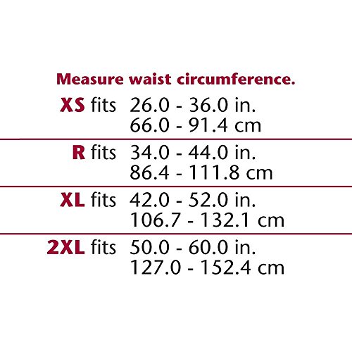 Sizing information: Measure waist circumfrerence. X-Small is 26.0 to 36.0 inches. Regular is 34.0 to 44.0 inches. X-Large is 42.0 to 52.0 inches. X-Large is 50.0 to 60.0 inches.