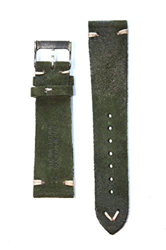 -. Title : VINTAGE Military Green Genuine Suede Leather Watchband Made in Italy 20mm with S/S Buckle and Suede Lining