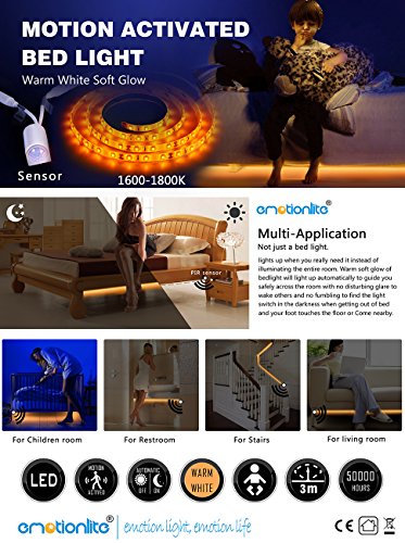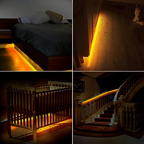 Smart Bed Light--- Ultra Warm soft glow (1600K) bed light will light up automatically with Motion Activated Sensor, guide you safely across the room with no disturbing glare to wake others up and no fumbling to find the light switch in the darkness when getting out of bed.