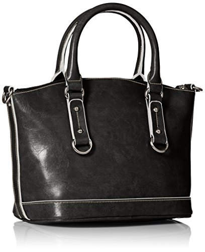 Studio : Emilie M. Publisher : Emilie M. Binding : Apparel Product Description Handbag dimensions: 11.0" width x 8.0" height x 6.0" depth (4.0" handle drop. 15" shoulder strap drop) shiny silver hardware top zipper closure detachable shoulder strap faux ostrich with two-tone edging interior organization: 2 cell phone pockets and zipper pocket exclusive striped lining 0