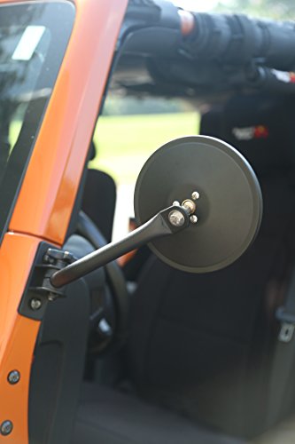Love taking your doors off, but hate the hassle of swapping out your mirrors? Have mirror relocation brackets, but dislike the limited visibility they offer with doors on? This quick release textured black round side mirror offers the perfect solution for your Wrangler. How quick can you remove or install this stylish quick release mirror? In a word, quick. The mirror mounts to a bolt-on bracket and is secured with a locking knob that allows for easy installation and removal. The long adjustable arms give you great visibility with your doors off or on. Fits left or right side. Sold individually.