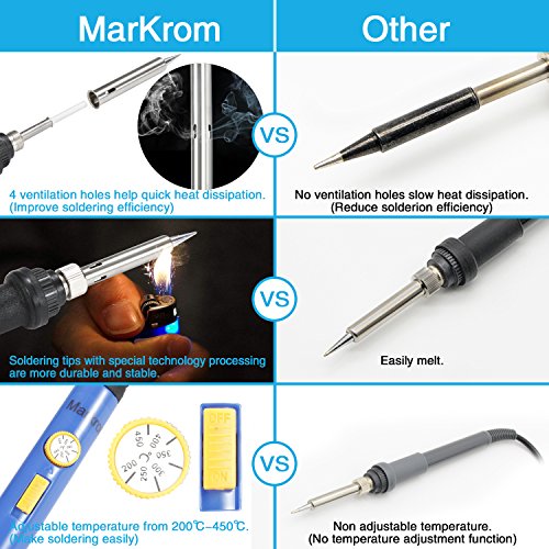 Markrom Soldering Iron Kit for DIYer with ON/OFF Switch Adjustable Temperature, 9-in-1, Household 60W Soldering Iron Tools, with 5pcs Soldering Tips, Solder, Solder Wires, Stand and Other Tools