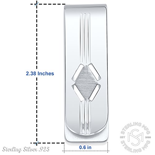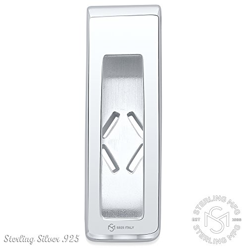 Studio : Sterling Manufacturers Publisher : Sterling Manufacturers Binding : Apparel Product Description Sterling Silver Money Clip, Made in Italy, Solid Design, Engravable, weight is approx 16 grams, measures approx 2" by 1/2". CARING FOR STERLING SILVER As with all sterling silver, never use anything but a clean 100% cotton or a special sterling silver cleaning cloth. Paper, polyester, and coarse fabrics often contain wood fibers or synthetics that can cause tiny scratches in the surface of your fine sterling silver jewelry. Remember, silver is a very soft metal and you can scratch it if you aren't careful so don't rub it too briskly. Silver should not come into contact with harsh household chemicals such as bleach, ammonia, or chlorine. To avoid silver from tarnishing, store silver jewelry in a velvet lined jewelry box or pouch, as it is prone to tarnish as it naturally reacts with sulfur or hydrogen sulfide in the air. CARING FOR RHODIUM PLATED (PLATINUM PLATED), GOLD PLATED, ROSE GOLD PLATED OR BLACK RHODIUM PLATED SILVER As with all plated items, it is extremely important to keep them away from any kind of chemical. Do not clean them in the dishwasher or use ultrasonic cleaners that utilize chemicals. Never use toothpaste and never brush with a toothbrush. Do not use polishing cloths that are intended for use on uncoated silver or for gold jewelry, and ensure pieces are not in regular contact with hard surfaces. Avoid contact with perfume, hairspray, body lotion, body wash, soap, and household cleaning products. Clean plated silver with warm water and a mild liquid soap. Rinse thoroughly and dry with a soft polishing cloth immediately to avoid mineral residue from the water. Do not swim in the ocean with plated jewelry. Plating may wear off over time. Re-plating jewelry does not take long, and most professional jewelers offer this service. Keep plated jewelry in a velvet-lined jewelry box, or wrap it in a soft material that will prevent scratches. 0