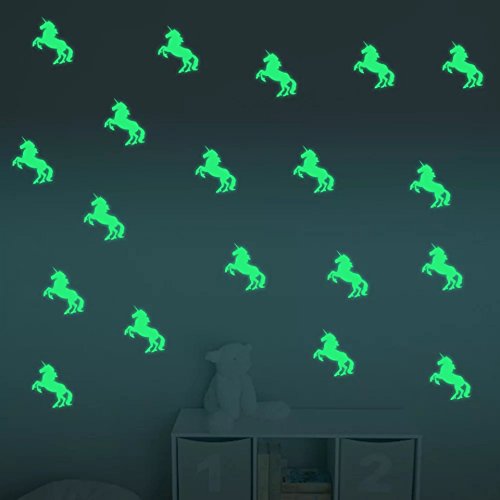 -. Title : Unicorn Fluorescence Wall Stickers for Living Room Bedroom Decor Glow in The Dark Easily Removable - 10 PC included