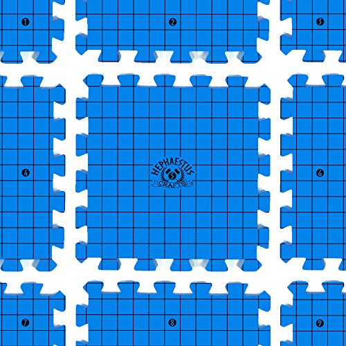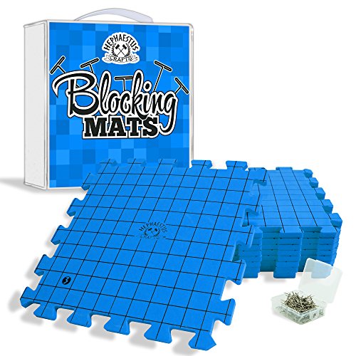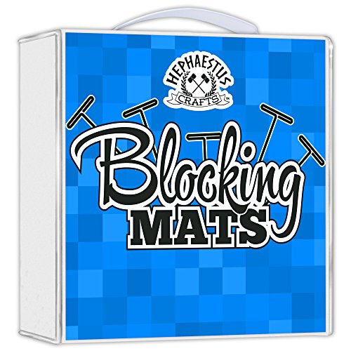 Hephaestus Crafts Blocking Mats for Knitting - Pack of 9 BLUE Blocking Boards with Grids for Needlepoint or Crochet. 100 T-pins and Reusable Carry Bag