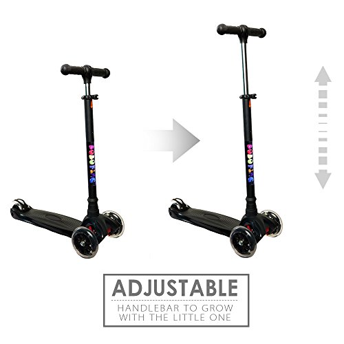 -. Brand : BOBOKING -. Feature : The BOBOKING was engineered and constructed for superior durability.All the metal in the scooter is wrapped in rubber. It is a safer scooter for a child. / 100% SATISFACTION GUARANTEE - Buy with confidence. If there is a problem with your scooter we'll gladly refund you in full. / The BOBOKING's wheels are made of the highest quality PU. It is the quality choice in 3-wheel scooters for young children ages 2-12. / ADJUSTABLE HANDLEBARS: that grow with your child. The handlebars adjust from 26.5 to 31.5 inches from the deck. He or she can hang on tightly to the comfortable dual-injection grips. / STEEL PLATE REINFORCED DECK: for maximum support and stability. Maximum weight capacity of 130lbs, which is more than double other leading brands. -. IsAutographed : 0 -. IsMemorabilia : 0 -. Label : BOBOKING -. Manufacturer : BOBOKING -. MPN : BO-1001 -. PartNumber : BO-1001 -. ProductGroup : Sports -. ProductTypeName : OUTDOOR_RECREATION_PRODUCT -. Publisher : BOBOKING -. Studio : BOBOKING -. Title : Kick Scooter for Kids ages 2-12, 4 Adjustable Height T-Bar Scooter with 3 Wheels and LED lights, 150lb Weight Limit kid Kick Scooters, BOBOKING Christmas Gifts for Children