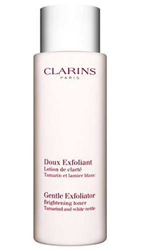 -. Feature : Clarins Gentle Exfoliator Brightening Toner with Tamarind and White Nettle - 4.2 Fl Oz. / A fresh, fluid exfoliating lotion that brightens, smoothes and softens skin. / Regular exfoliation helps to strengthen the skin's resistance to wrinkles and maintain the balance between preventing a build-up of dead cells and encouraging cell renewal. / Helps prevent the build-up of pore-clogging debris. Preps skin for the Clarins treatments to follow. / Skin Type: Normal, Dry, Combination, Oily.