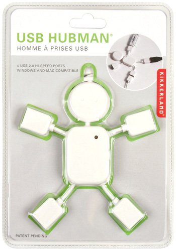 USB Hubman has flexible wire arms and legs with a port at the end of each one. His body houses all the electronics and a tiny green power indicator LED in place of a heart. He is certain to assist you in cleaning up your computer cables!Feature