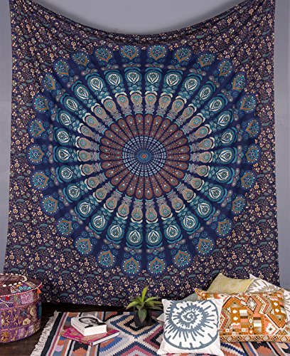 Beautiful Blue Peacock Mandala Tapestry By Bohomandala - A Perfect Hippie, Bohemian, Indian, Boho, Dorm, Hippy, Psychedelic, Wall Hanging.
