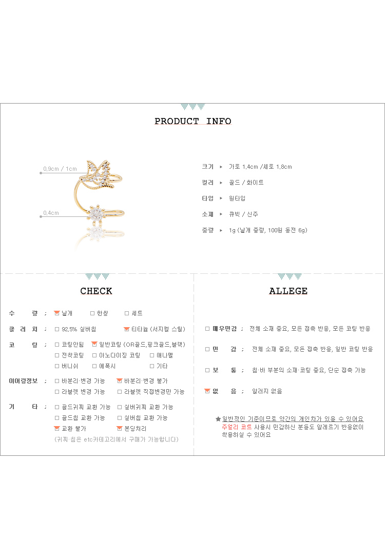 Ear Cuff Korea Style Made in Korea Earrings Cute Sweet Design Bird (J313) [2color]